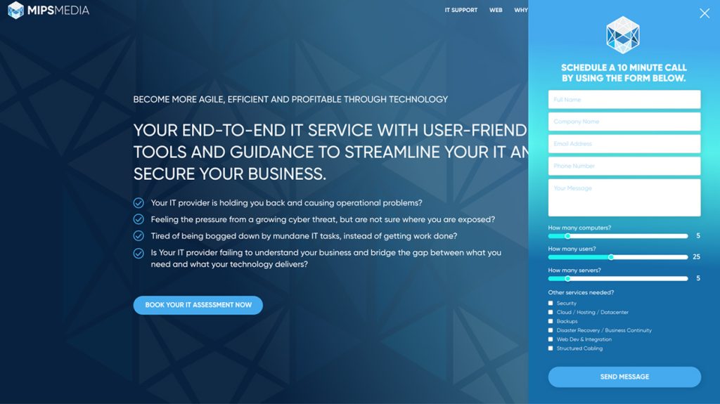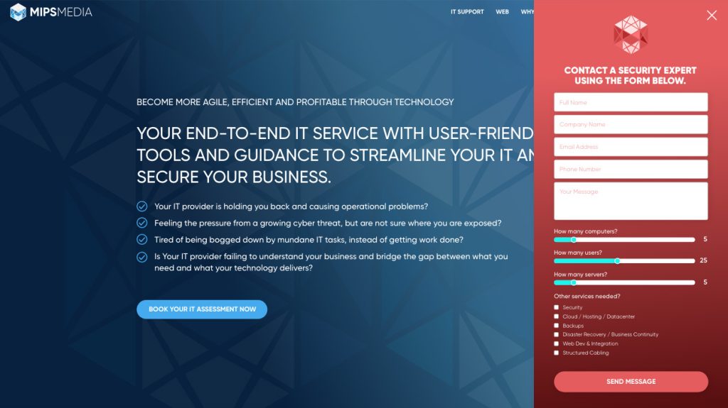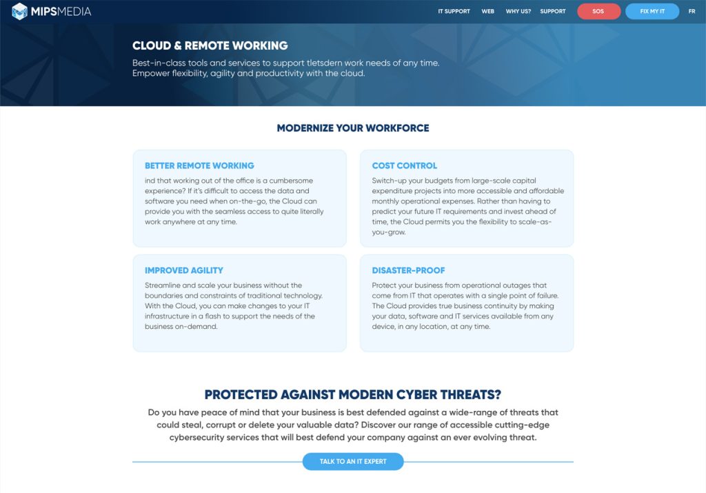 Introduced and highlighted the site’s tech stack to demonstrate capabilities and build trust, making it clear which technologies power Mips Media’s solutions.